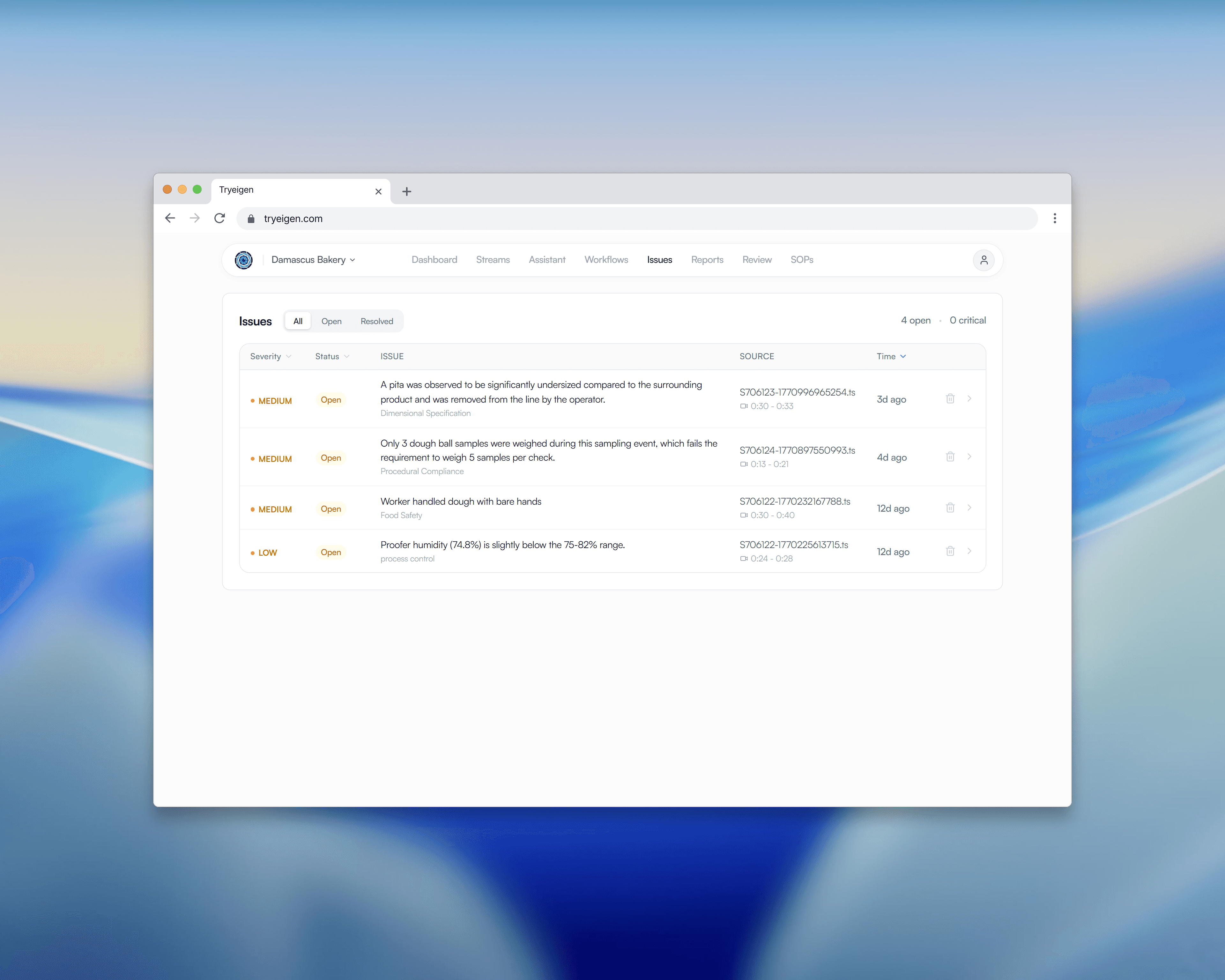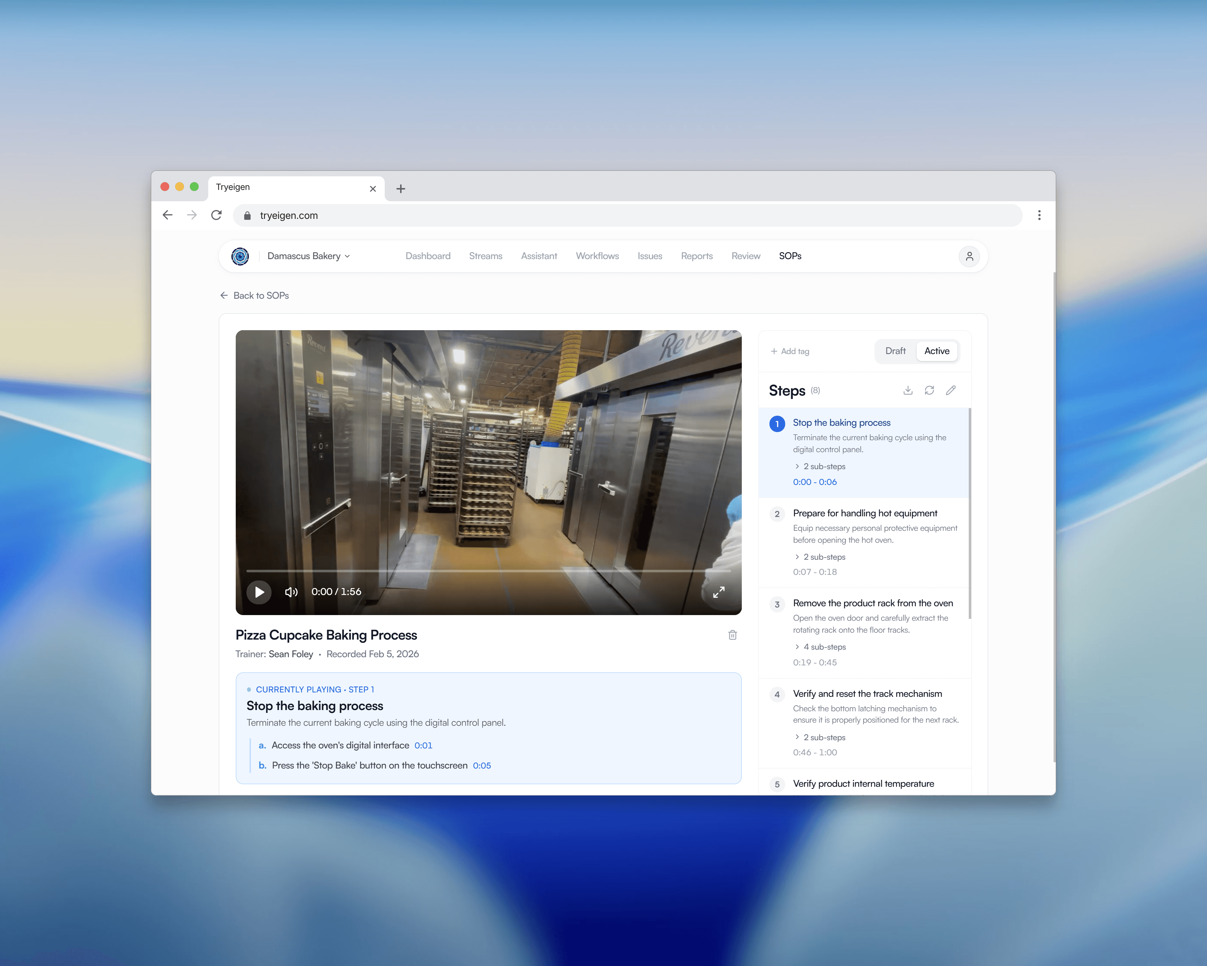 Eigen is an AI-powered video analysis platform I built for manufacturing facilities. The system captures real-time POV footage from body cameras on the production floor, autonomously extracts quality and compliance data using vision AI, and surfaces actionable insights through a clean management dashboard.